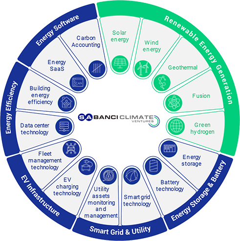 Sabanci Climate Ventures invests in category-leading startup companies and venture capital funds in the energy and climate-tech sectors. We focus on entrepreneurs who are fiercely passionate about “Energy Transition and Sustainability” while also addressing future sustainable energy needs.